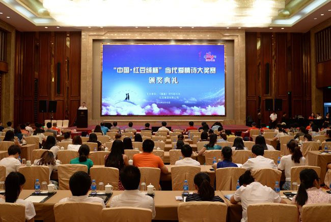 為了進一步繁榮愛情詩創(chuàng)作,弘揚正確愛情觀,特別是推動中國當(dāng)代愛情詩再度輝煌,2014年7月1日,由《星星》詩刊雜志社與紅豆集團聯(lián)合啟動了“中國?紅豆絨杯”當(dāng)代愛情詩大獎賽征文活動,作為紅豆七夕節(jié)的一項重要活動。現(xiàn)在經(jīng)過一年的征集及后期評選,在今年七夕——中國情人節(jié)前夕頒獎。