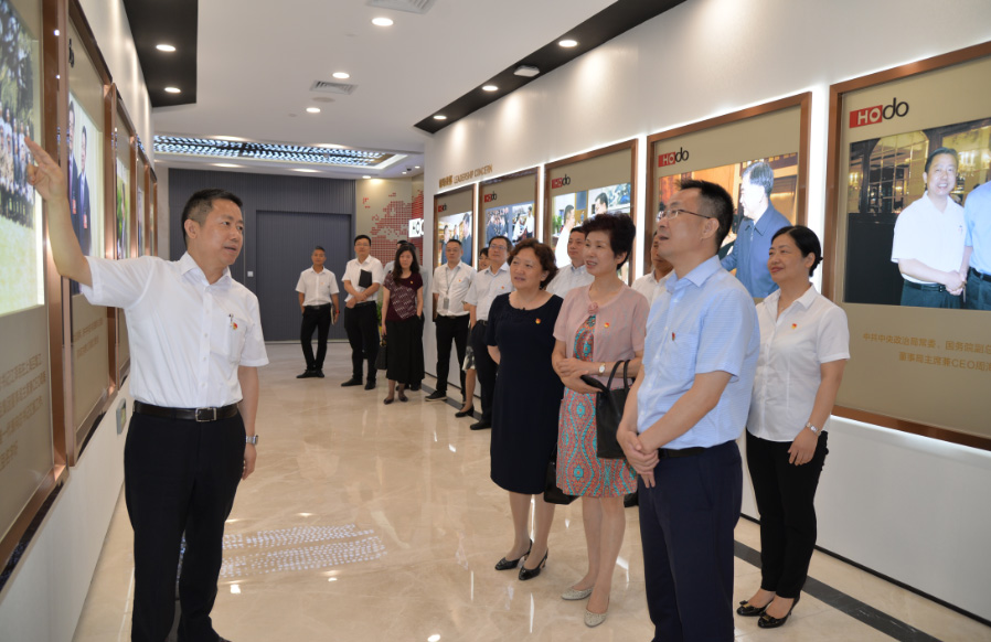 熊濤贊嘆紅豆展廳內容豐富、信息量很大,說道:紅豆三代領頭人積累下豐富的物質文化和精神財富,一直跟黨走,并且走出了自己的特色,將黨建和現代企業制度完美融合,履行社會責任,不忘“八方共贏”,有恒心,有情懷。熊濤還表示,江蘇銀保監局近年來一直十分關心和支持民企發展,最近還出臺了精準幫扶企業融資聯合會診機制,對有競爭力、有發展前景的企業都十分關注,尤其像紅豆集團這樣的企業。
