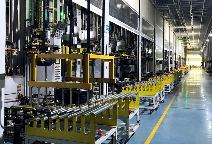 在這個“黑燈車間”——通用股份乘用胎工廠硫化車間生產(chǎn)線上,生產(chǎn)主力不再是工人,取而代之的是機械手臂、EMS小車、堆垛機、全自動硫化機等等,它們在無照明的條件下,為200多個規(guī)格型號的6000多條胎胚同時進行自動硫化作業(yè),實現(xiàn)24小時不間斷生產(chǎn)。2019年,該車間還被評為無錫市智能車間。