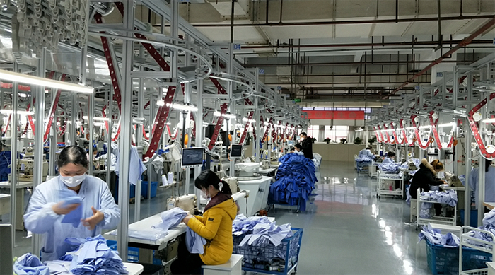 在協調好防護服生產的同時,徐亞東也在快速恢復他原來的本職工作。據他介紹,目前襯衫廠復工人員已經達到230人,復工率恢復至85%,基本不會對生產造成影響。人員、機器就位,流水線正常運轉,在徐亞東的帶領下,襯衫廠已經進入全面復產狀態,讓他感到欣慰的是,疫情沒有影響職工的工作熱情,工廠生產效率不降,質量不減。