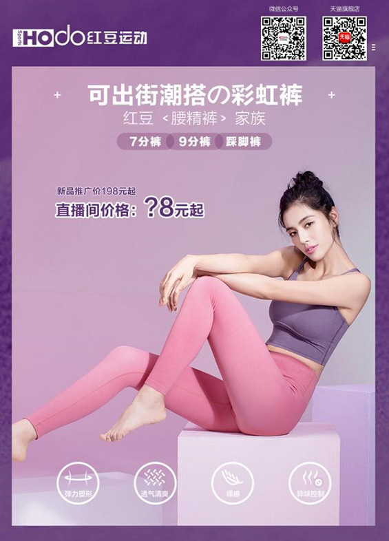 現在的女孩子都喜歡穿能夠凸顯身材的衣服,尤其是褲子,專挑能夠顯腿細腿長的。紅豆運動裝的新款小妖精褲,加高14cm超高腰設計,加寬腰面更帖和,收腹作用明顯,能夠凸顯完美S型身材。面料非常柔軟舒適,沒有壓迫感,能夠滿足任何大幅度拉伸活動。而且,面料還使用了抗菌劑,能有效控制異味,如化學氣味,汗臭等,還可以抑制微生物細菌滋生,適合各種敏感肌穿著。