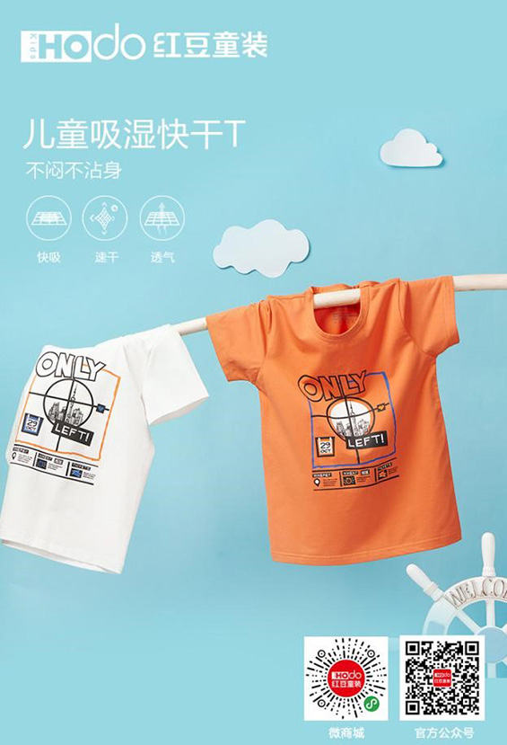 夏天就要到了,大家都知道小孩子好動易出汗,非常容易受涼,因此紅豆童裝推出了快干T 。此款T恤在保持舒適性的同時,又在原有的棉成分中加入coolpass吸濕排汗聚酯纖維,這種面料能在大量出汗的情況下,利用內部“十字”異形內凹槽水槽及毛吸原理將水分排出,達到速吸快干的效果。這樣,孩子在出汗后,衣服都不會有粘貼皮膚產生的濕冷感。這是一款非常適合孩子夏季穿著的單品。成立于1994年的紅豆童裝堅持以“健康舒適”為產品理念,致力于打造出適合中國兒童的國民童裝。