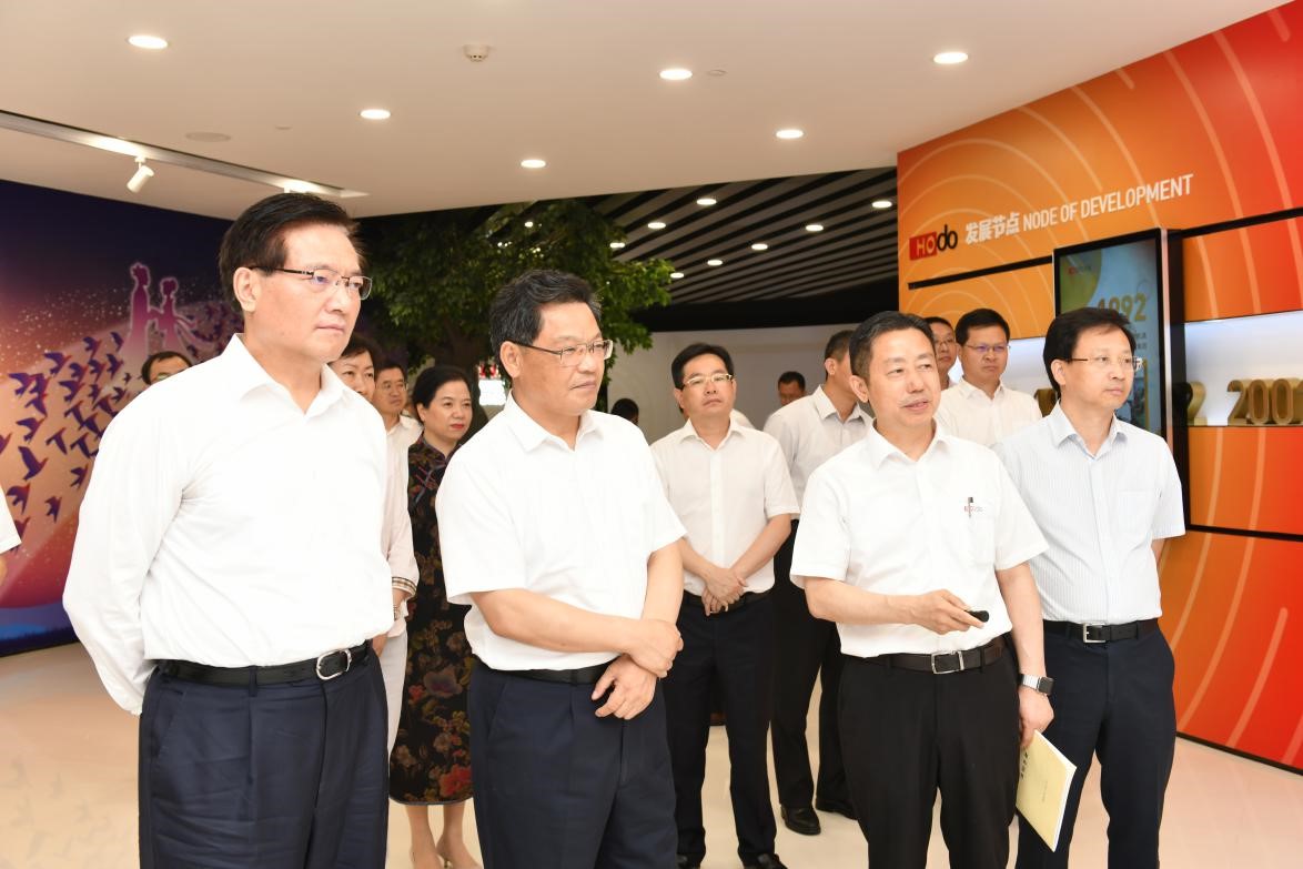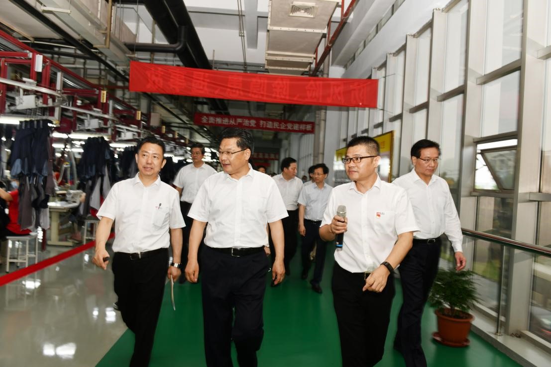 任振鶴一行先后參觀了紅豆展館、紅豆職工之家、紅豆西服車間、勞模工作室和紅豆通用半鋼智能車間,觀看了紅豆產(chǎn)改、黨建宣傳片,詳細(xì)聽(tīng)取了紅豆集團(tuán)黨委書記、董事局主席兼CEO周海江介紹的“黨建帶工建、培育新時(shí)代產(chǎn)業(yè)工人”等方面工作的開(kāi)展情況。他對(duì)紅豆創(chuàng)立的現(xiàn)代企業(yè)制度+企業(yè)黨建+社會(huì)責(zé)任“三位一體”的中國(guó)特色現(xiàn)代企業(yè)制度表現(xiàn)出濃厚興趣,對(duì)紅豆集團(tuán)將黨建和現(xiàn)代企業(yè)制度有機(jī)結(jié)合、黨建文化和企業(yè)文化深度融合、黨建引領(lǐng)工建的做法給予肯定。