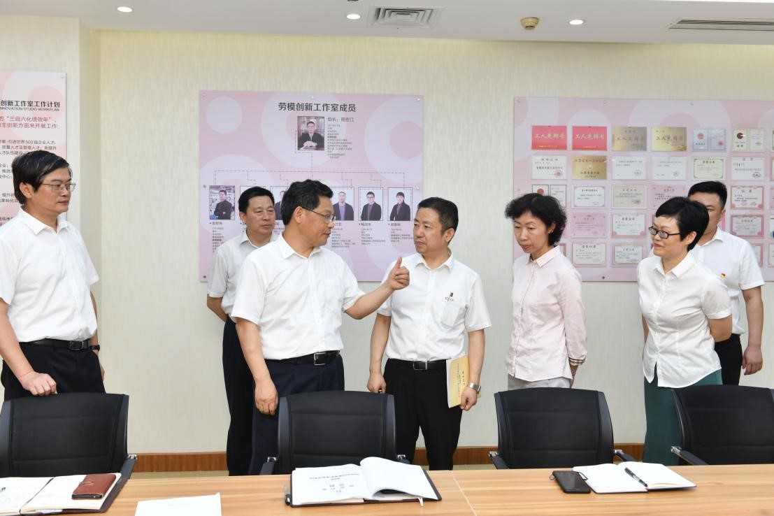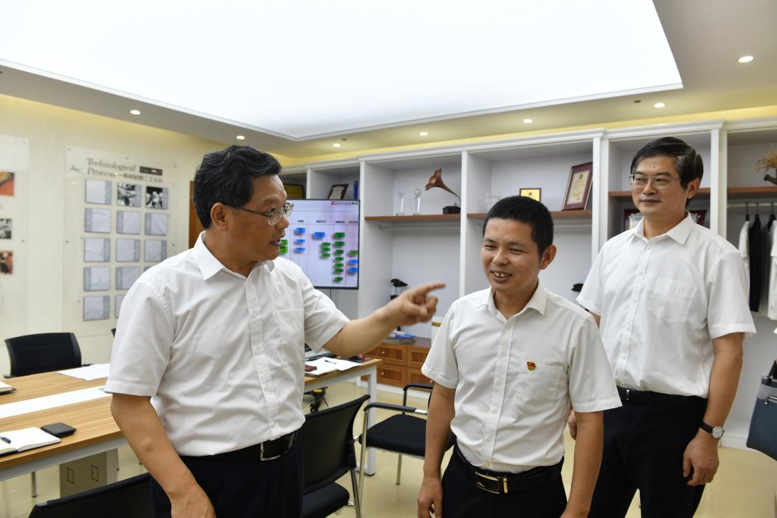 在勞模工作室,全國(guó)勞模候選人郭軍偉向任振鶴介紹了近期開(kāi)展的襯衫、西服智能化個(gè)性定制項(xiàng)目,任振鶴對(duì)這一項(xiàng)目的產(chǎn)業(yè)化十分看好。他表示,紅豆堅(jiān)持以黨建為引領(lǐng)、產(chǎn)改為引擎,率先創(chuàng)新機(jī)制、搭建平臺(tái),大力弘揚(yáng)勞模精神、工匠精神,充分給予了產(chǎn)業(yè)工人出彩的機(jī)會(huì)。全國(guó)勞模、省勞模和市勞模遍布紅豆各層級(jí),形成了一支勞模梯隊(duì),激發(fā)出更多員工的創(chuàng)新創(chuàng)業(yè)熱情,使企業(yè)煥發(fā)出無(wú)限生機(jī)。