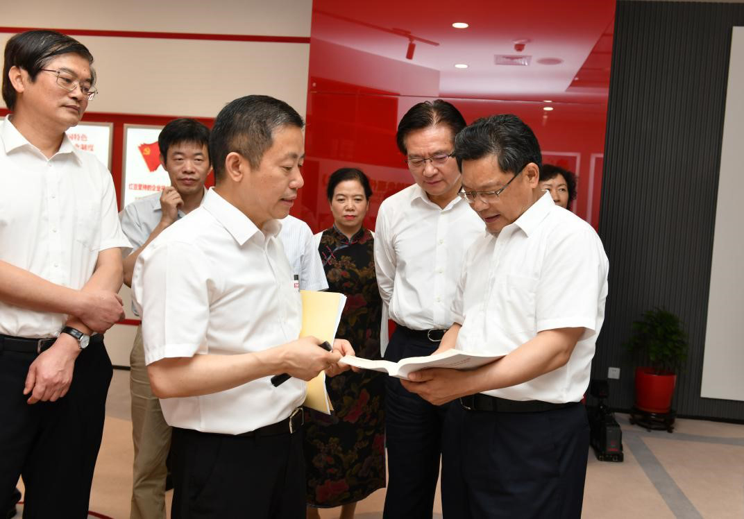 (任振鶴聽(tīng)取紅豆黨建工作介紹)