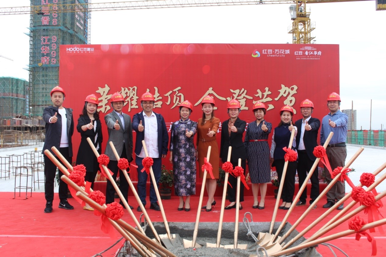 歷經210個日日夜夜的精雕細琢,2020年10月7日,江陰紅豆萬花城順利結頂。