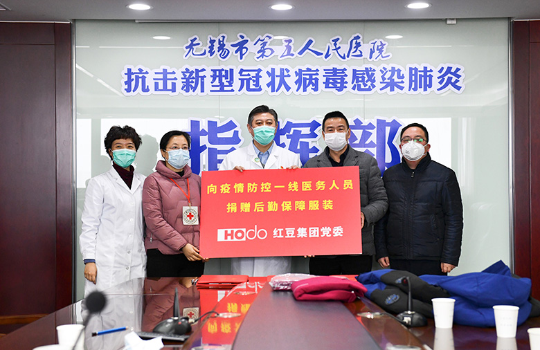集團旗下紅豆股份黨委向疫情防控一線醫務人員捐贈一批后勤保障服裝,包括200套羽絨服500套內衣