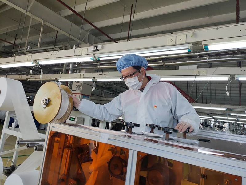 尚慶軍,紅豆黨員突擊隊(duì)的一位“拼命三郎”。已有9年黨齡的尚慶軍,不僅要做好疫情防控的“守門人”,檢測(cè)和登記每一位進(jìn)出人員的體溫,同時(shí)早中晚三次還要對(duì)工廠的各個(gè)角落進(jìn)行消毒,確保口罩生產(chǎn)線改造順利進(jìn)行。“從2月2號(hào)開始上班,已經(jīng)連續(xù)20多天沒有陪伴家人。”尚慶軍說,“看著原材料從入口進(jìn)去,一只只潔白的口罩從出口自動(dòng)下線,我就感覺特別激動(dòng),特想哭。”
